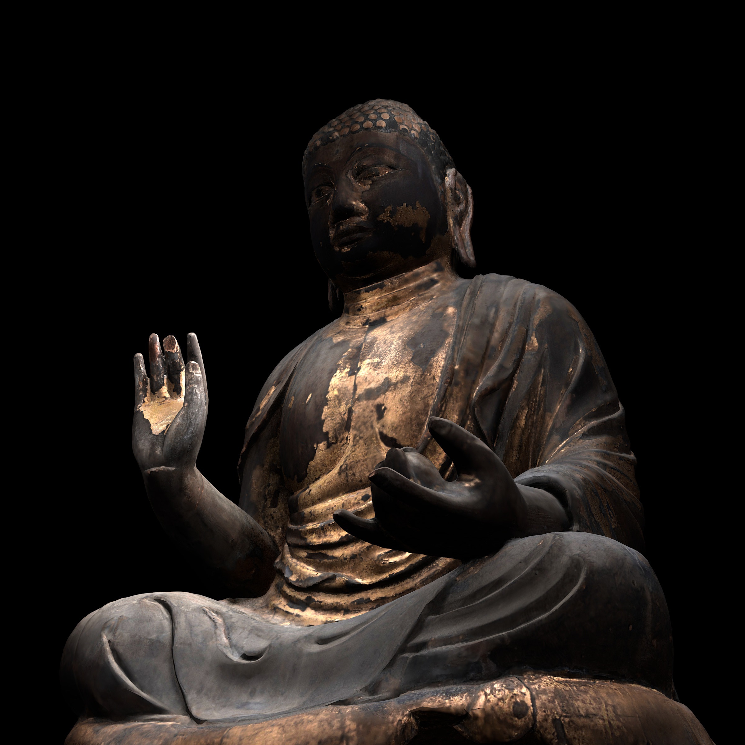 大きな目や、丸みを帯びた独特の顔立ち、圧倒的な体軀が造形力を示す。左手に薬壼を持つ姿や、光背に配置された六体の化仏を含む「一尊七仏薬師」の形式は、『薬師瑠璃光七仏本願功徳経』と『陀羅尼集経』の教義を融合させたものである。本堂の円形土壇も『陀羅尼集経』に基づくとされる。造立年代には諸説あり、天平宝字六年(762)頃や延暦年間(793頃)、800年前後から弘仁期前半(810年代)頃にかけての時期とする説がある 。造東大寺司のような官営工房の存在が背景に推定され、平安初期彫刻へと影響を与えた重要な作品と評価される。