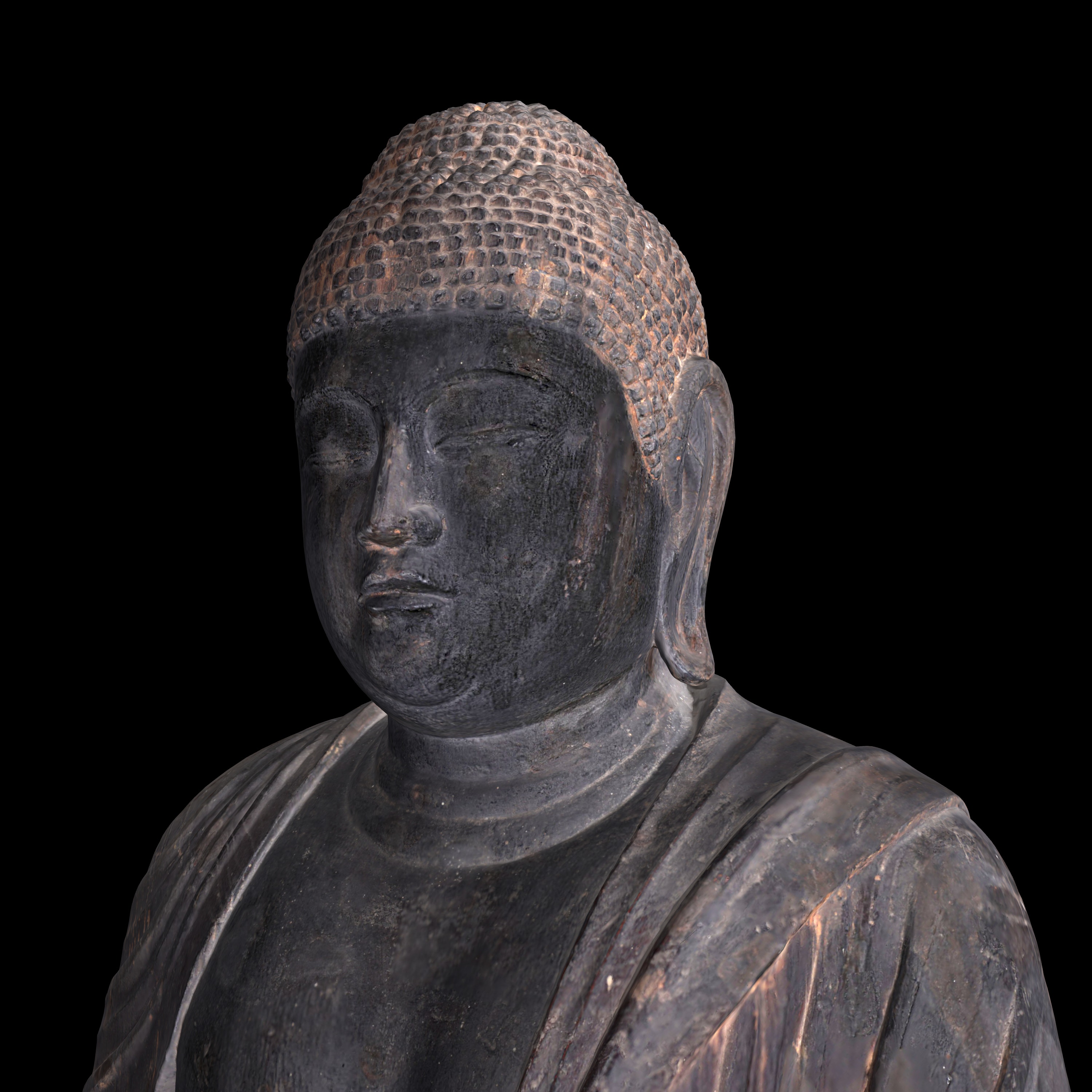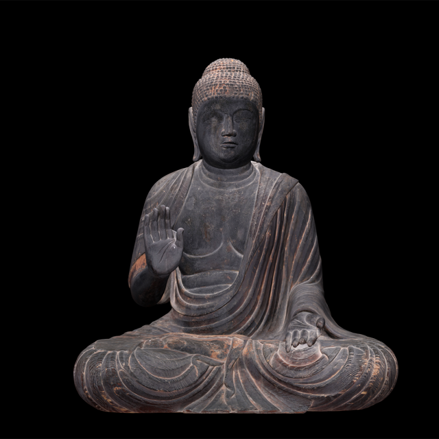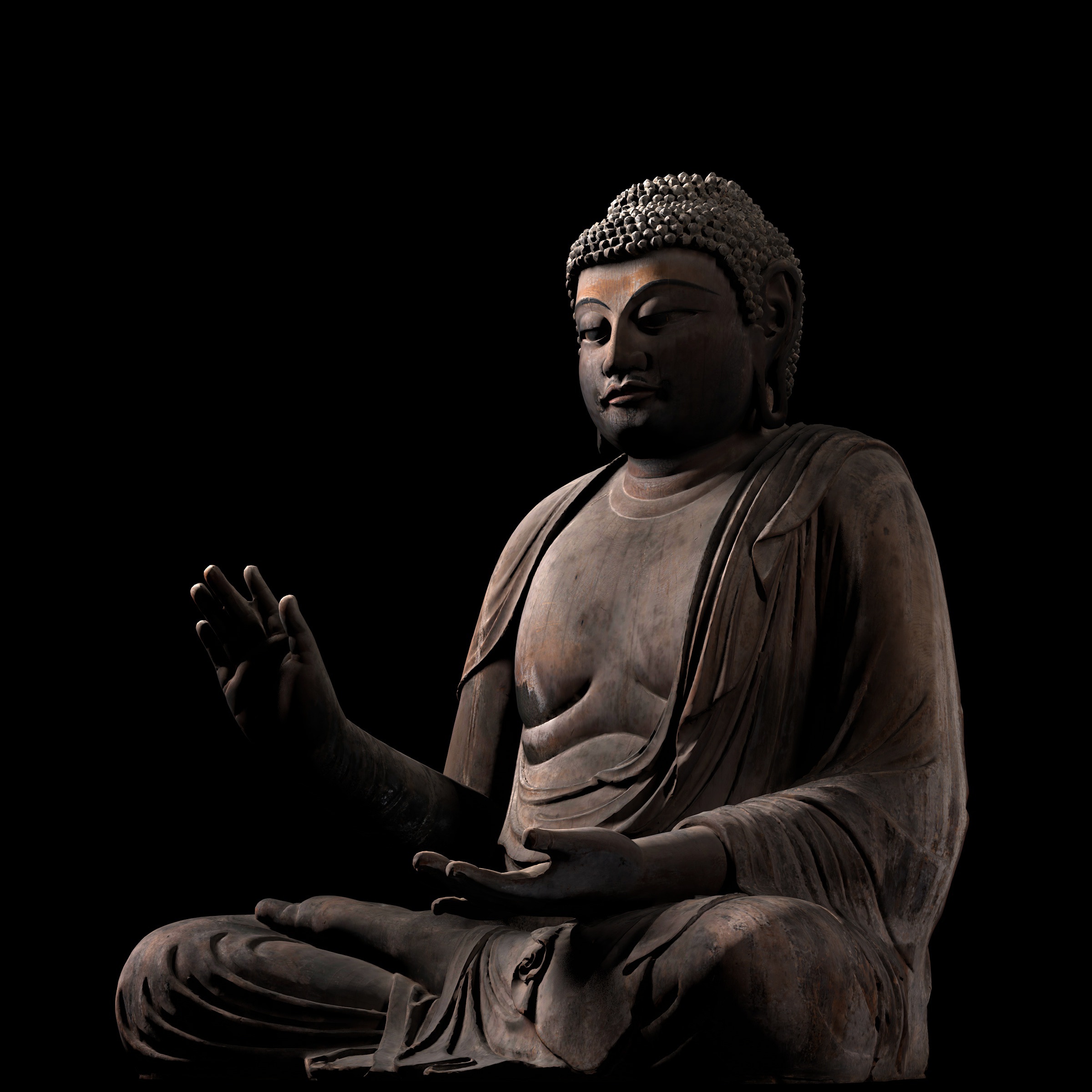 本尊である薬師如来坐像は、奈良時代最末期に造立された木彫像であり、その特徴的な姿が注目される。カヤの一木造で、表面は白檀のように見せる素地仕上げである。本体の構造で最も特異な点は、左手先材を除くすべての矧木を縦木で通していることである。屈臀する手の前膊以下の矧木が縦木である例は、神護寺薬師如来像などあるものの、坐像の両脚部矧木までを縦木で通しているのは他に例がない。
