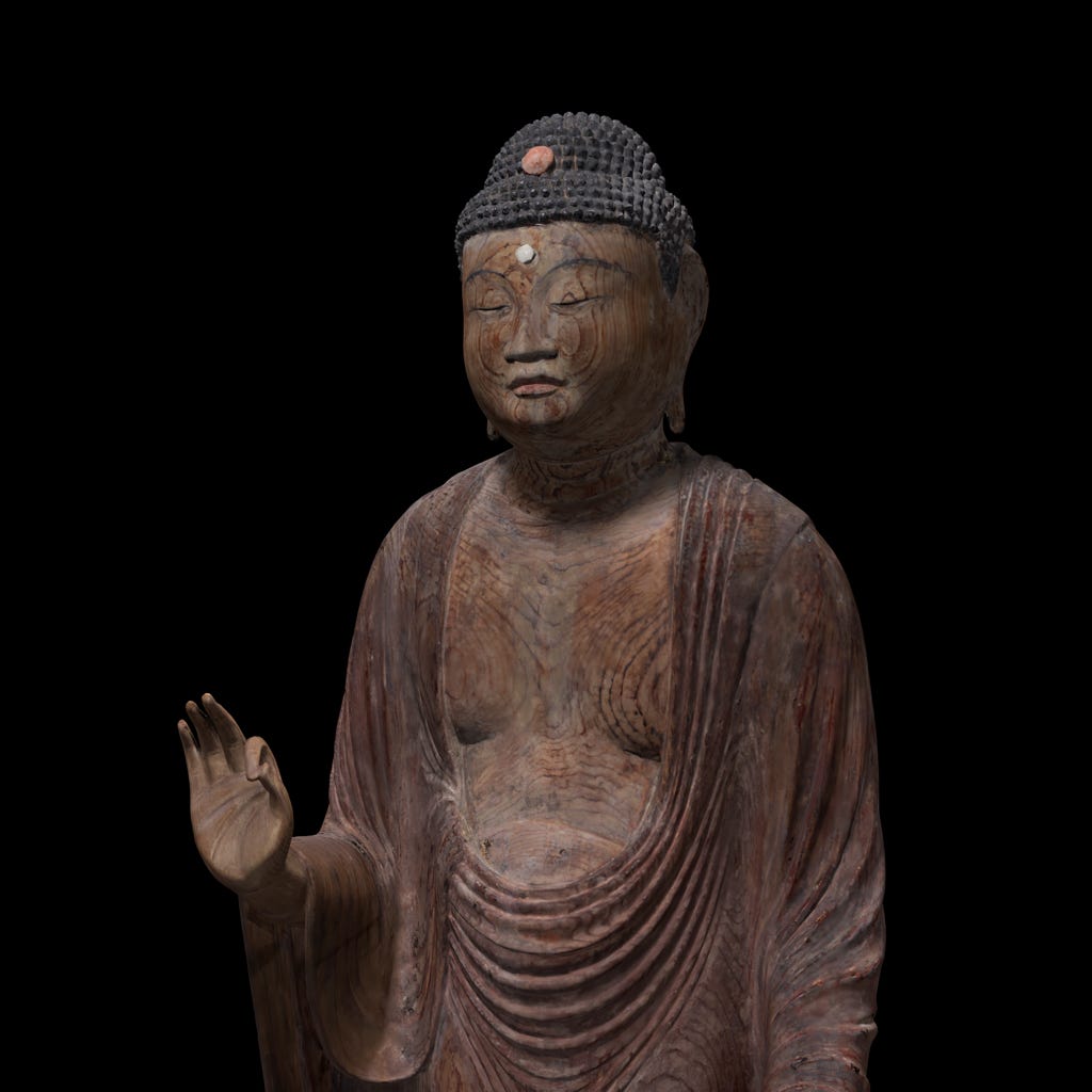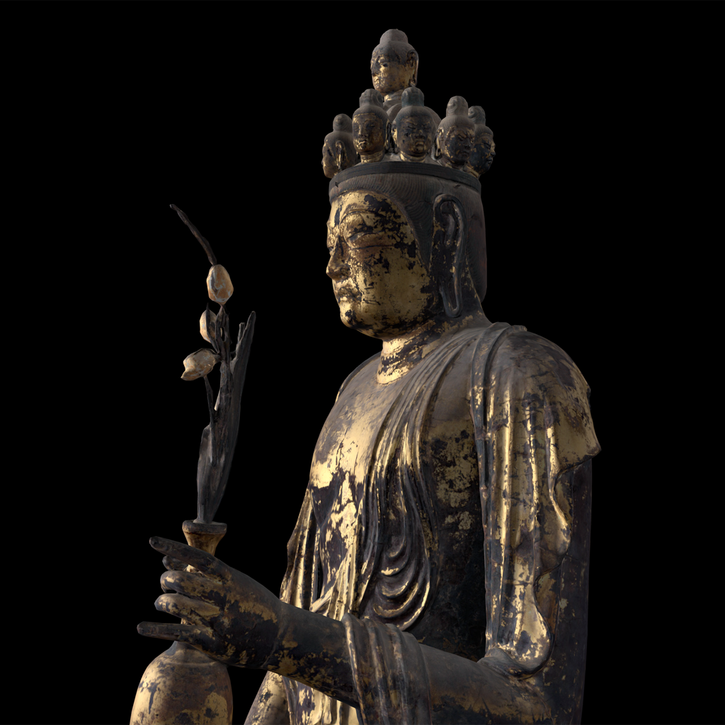 Standing Eleven-headed Kannon, wood-core dry lacquer