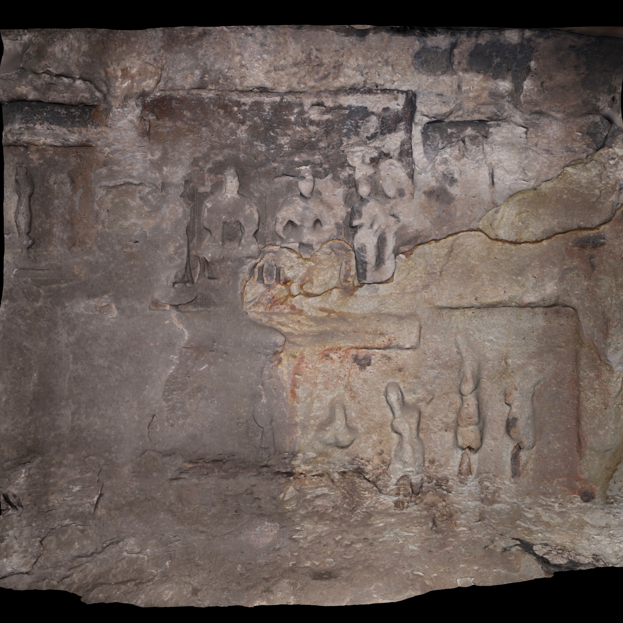 新薬師寺の薬師如来坐像を囲む円形土壇上には、十二神将像が外向きに配置されている。この塑像群は彫像としては日本最古の十二神将像の遺品である。昭和六年(1931)に補修された伝宮毘羅(くびら)像を除き、天平年間(729~749)に造立されたことが伝因達羅像の框座に記された墨書から確認されている。
